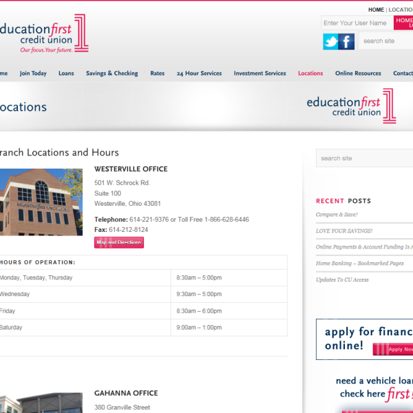 Education First Credit Union serves teachers, administrators, staff, students, volunteers, educational support organizations and residents in the Worthington, Westerville, Olentangy, Powell, Gahanna, and German Village communities.